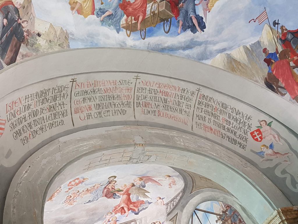 A templom boltívén pedig az „Isten, hazánkért térdelünk” kezdetű szentek himnuszának négy versszakát olvashatjuk. Jeges Ernő freskóit láthatjuk még Pannonhalmán (Bencés Gimnázium díszterme), Miskolcon, Budapesten és Bakonysárkányon. 1953 után hamar meg kellett tapasztalnia Magyarországnak, hogy a Nagy Imre nevével fémjelzett júliusi fordulat csak illúzió…