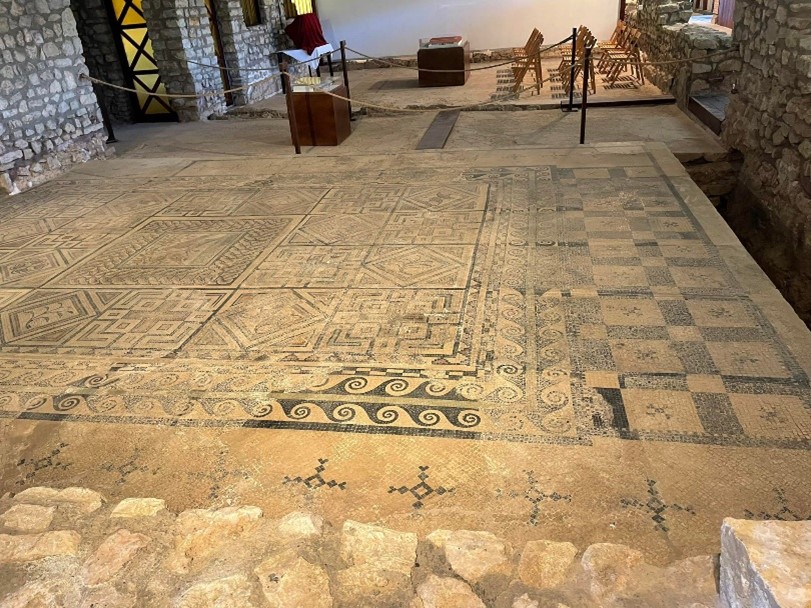 A balácai római kori villa eredeti padlómozaikja teljes egészében restaurálva a Magyar Nemzeti Múzeum Lapidáriumában tekinthető meg.