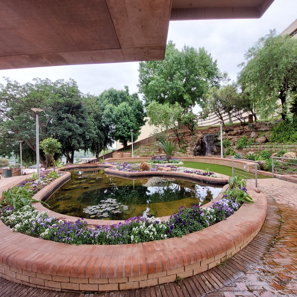 Ebéd után pedig az egyetem kertjén keresztül juthatunk el a könyvtár épületéhez.