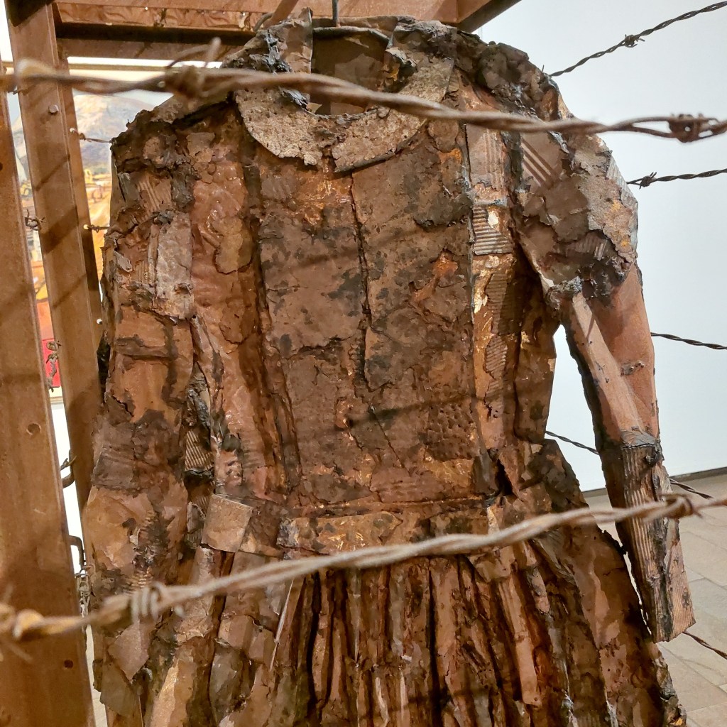 A műalkotás örökérvényű szimbóluma a háború szörnyűségeinek, a várakozásnak, de egy konkrét eset megjelölésére készült. Az 1899 – 1902 között dúló angol-búr háborúban ugyanis a britek nők és gyermekek tömegeit kényszerítették koncentrációs táborokba. Ezt jelképezi a szögesdrót.