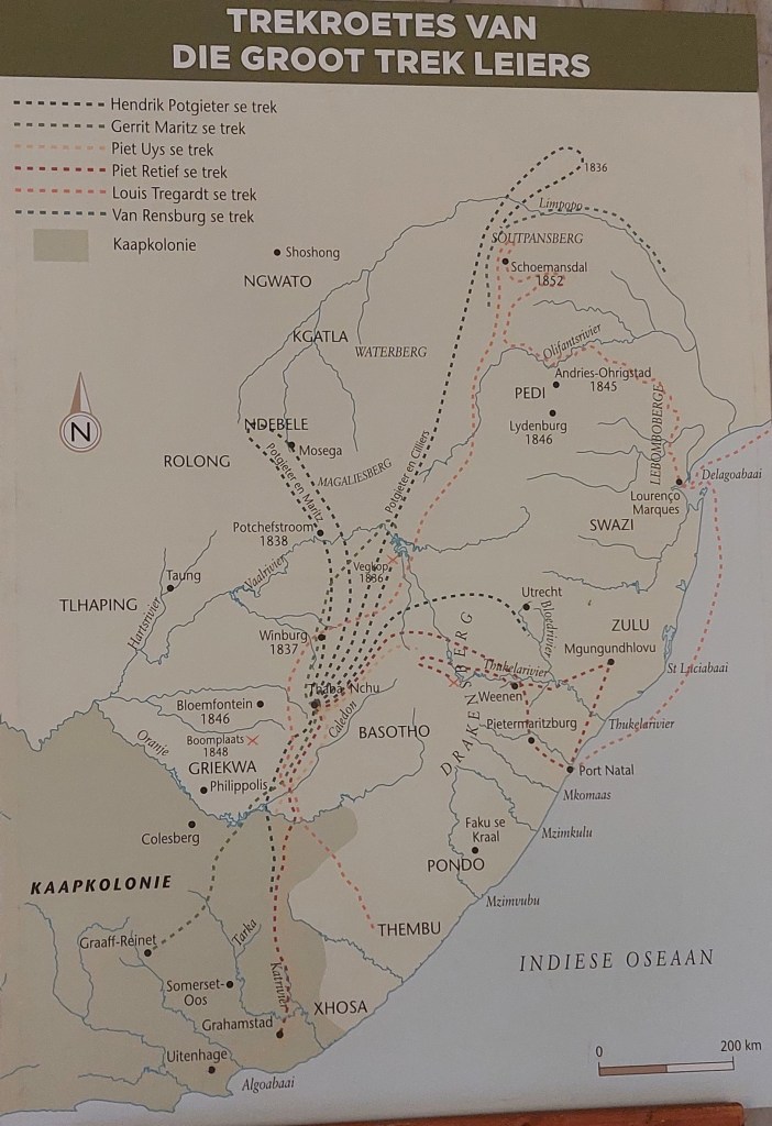 A napóleoni háborúk után (1815) a britek jó gyarmati pozíciókat szereztek Dél-Afrikában, és megjelentek itt az első telepeseik. Emiatt a búrok 1836-ban elhagyták a fokföldi gyarmatot és megindultak észak felé. Itt nem csak a “BIG 5” /oroszlán, leopárd, elefánt, orrszarvú (rinocérosz), kafferbivaly (buffalo)/ leselkedett rájuk veszélyként, hanem a területen élő őslakos törzsekkel is szembekerültek.