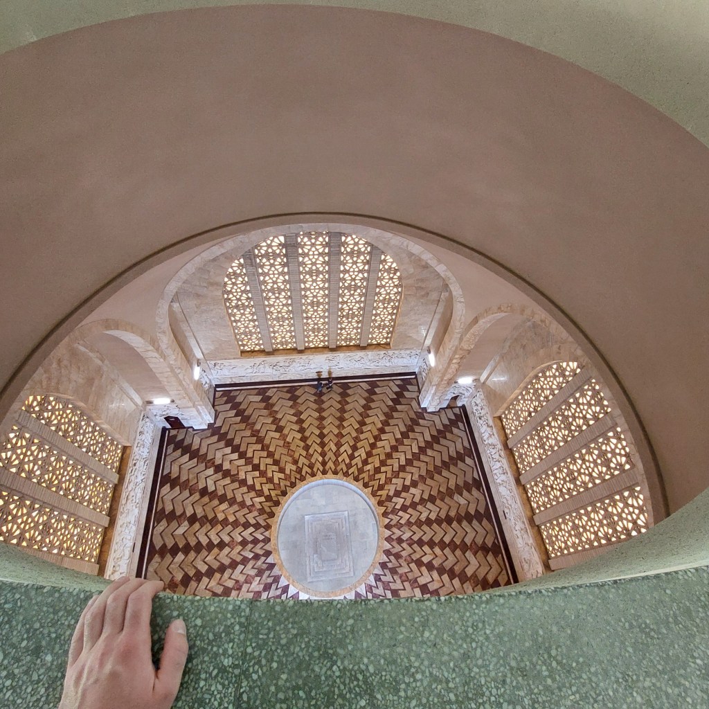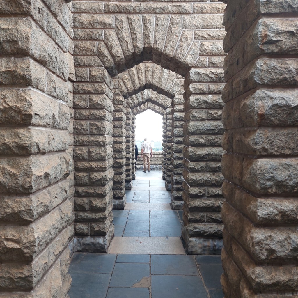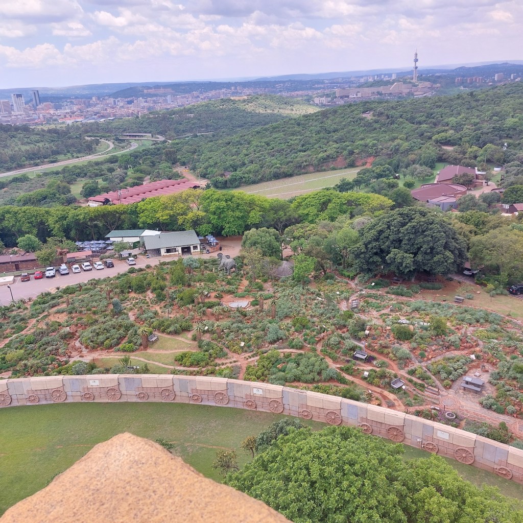 Az emlékművet gyönyörű kert veszi körül. Először felmásztam a legtetejére, ahonnan lefelé készítettem egy képet. Szédítő a látvány. Lent egy márvány emlékmű látható, amit a tetőn lévő lyukon át a nap december 16-án megvilágít. Afrikaans nyelvű feliratának fordítása “Mi érted, Dél-Afrika”.