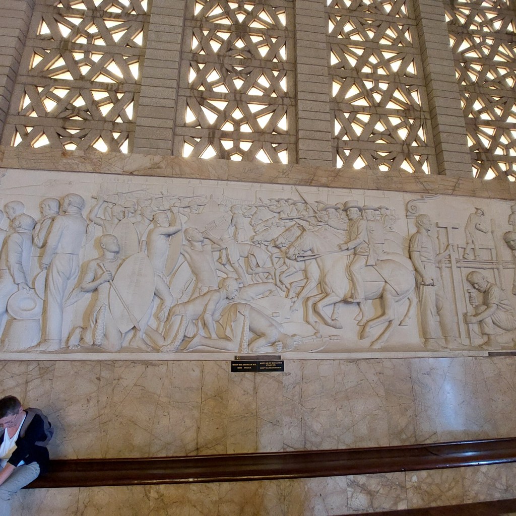Az emlékmű a Great Trek történetét meséli el domborműveken.